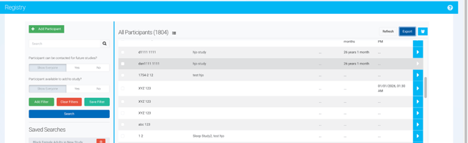This section outlines the steps required to export participant data from the Registry in Ripple Science. Following these steps ensures a complete and accurate export based on your selected filters and permissions.