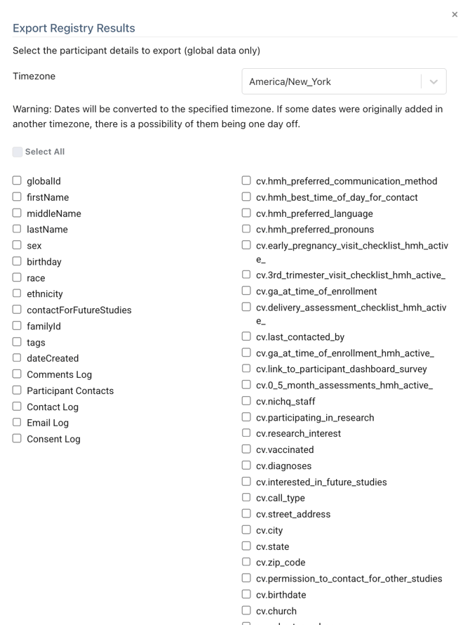 TIP: If data from a study is missing, first confirm that you are assigned to that study with Study Permission = Admin. This is the most common cause of incomplete Registry exports.